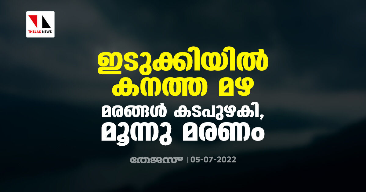 ഇടുക്കിയില് കനത്ത മഴ: മരങ്ങള് കടപുഴകി, മൂന്നു മരണം