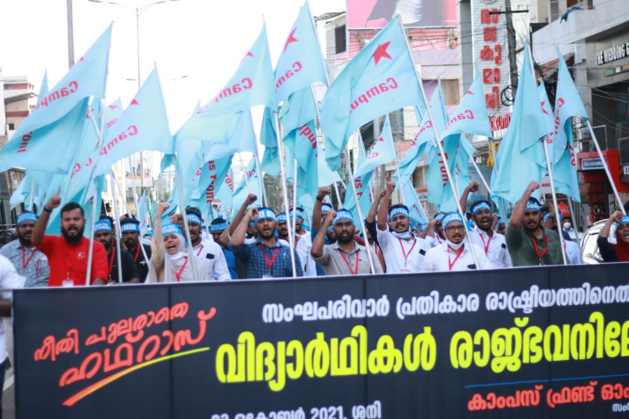 സംഘപരിവാരത്തിനെതിരേ ഉയരുന്ന ഓരോ ശബ്ദത്തെയും ഭയപ്പെടുന്ന സംഘപരിവാര പ്രത്യശാസ്ത്രം കാംപസ് ഫ്രണ്ട് ഉൾപ്പെടെയുള്ള സംഘപരിവാര വിരുദ്ധ സംഘടനകളുടെ നേതാക്കളെ അറസ്റ്റ് ചെയ്യുകയും പീഡിപ്പിക്കുകയും ചെയ്യുന്നതിനെതിരേ ശക്തമായ പ്രതിഷേധവുമായി മുന്നോട്ടു പോകുവാൻ പ്രതിജ്ഞാബദ്ധമാണെന്നും അദ്ദേഹം കൂട്ടിച്ചേർത്തു. കിഴക്കേകോട്ടയിൽ നിന്നും ആരംഭിച്ച മാർച്ച് ആയൂർവേദ കോളജ്, പാളയം വഴി രാജ്ഭവനിൽ സമാപിച്ചു. മാർച്ചിൽ മൂവായിരത്തിലധികം വിദ്യാർഥികൾ പങ്കെടുത്തു. മാർച്ച് സെക്ട്രറിയേറ്റിന് മുന്നിൽ പോലിസ് തടഞ്ഞു. നേതാക്കളുടെ ഇടപെടലിലൂടെ മാർച്ച് തുടർന്നു.
