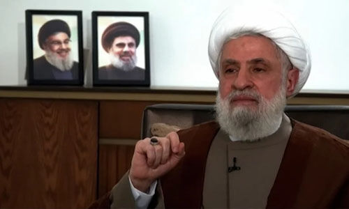 ''സിറിയയിലെ ഭരണമാറ്റം പ്രതിരോധത്തിന്റെ അച്ചുതണ്ടിന് ഒരു നഷ്ടമായിരുന്നു. ഫലസ്തീനികള്ക്ക് സിറിയ സഹായങ്ങള് നല്കിയിരുന്നു. ആയുധങ്ങളും മറ്റു അവശ്യവസ്തുക്കളും സിറിയ വഴിയാണ് ഫലസ്തീനികള്ക്കും ലബ്നാനികള്ക്കും ലഭിച്ചിരുന്നത്. സിറിയയിലെ മാറ്റങ്ങള് രണ്ടു പ്രദേശങ്ങളിലും വലിയ പ്രത്യാഘാതങ്ങളുണ്ടാക്കി.''-ശെയ്ഖ് നഈം ഖാസിം പറഞ്ഞു.