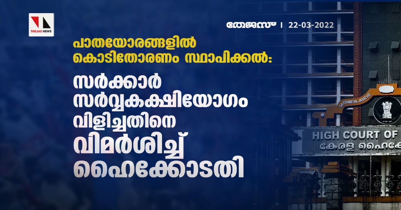 പാതയോരങ്ങളില് കൊടിതോരണം സ്ഥാപിക്കല്: സര്ക്കാര് സര്വ്വകക്ഷിയോഗം വിളിച്ചതിനെ വിമര്ശിച്ച് ഹൈക്കോടതി