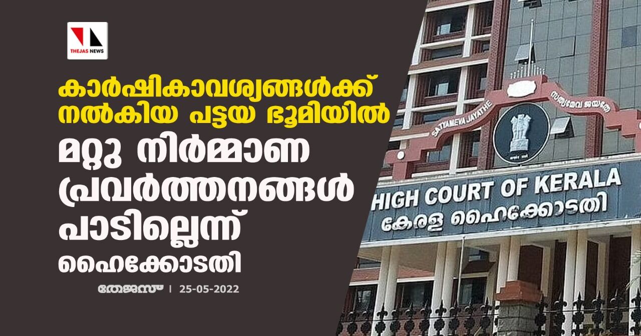 കാര്ഷികാവശ്യങ്ങള്ക്ക് നല്കിയ പട്ടയ ഭൂമിയില് മറ്റു നിര്മ്മാണ പ്രവര്ത്തനങ്ങള് പാടില്ലെന്ന് ഹൈക്കോടതി