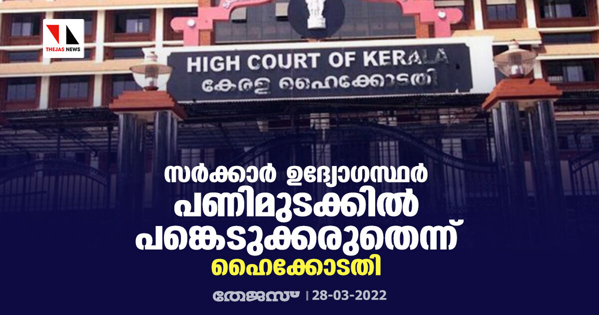 സര്ക്കാര് ഉദ്യോഗസ്ഥര് പണിമുടക്കില് പങ്കെടുക്കരുതെന്ന് ഹൈക്കോടതി