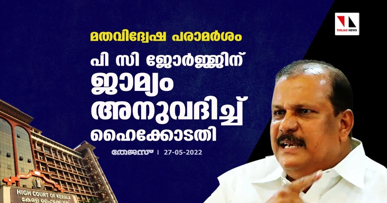 മതവിദ്വേഷ പരാമര്ശം: പി സി ജോര്ജ്ജിന് ജാമ്യം അനുവദിച്ച് ഹൈക്കോടതി