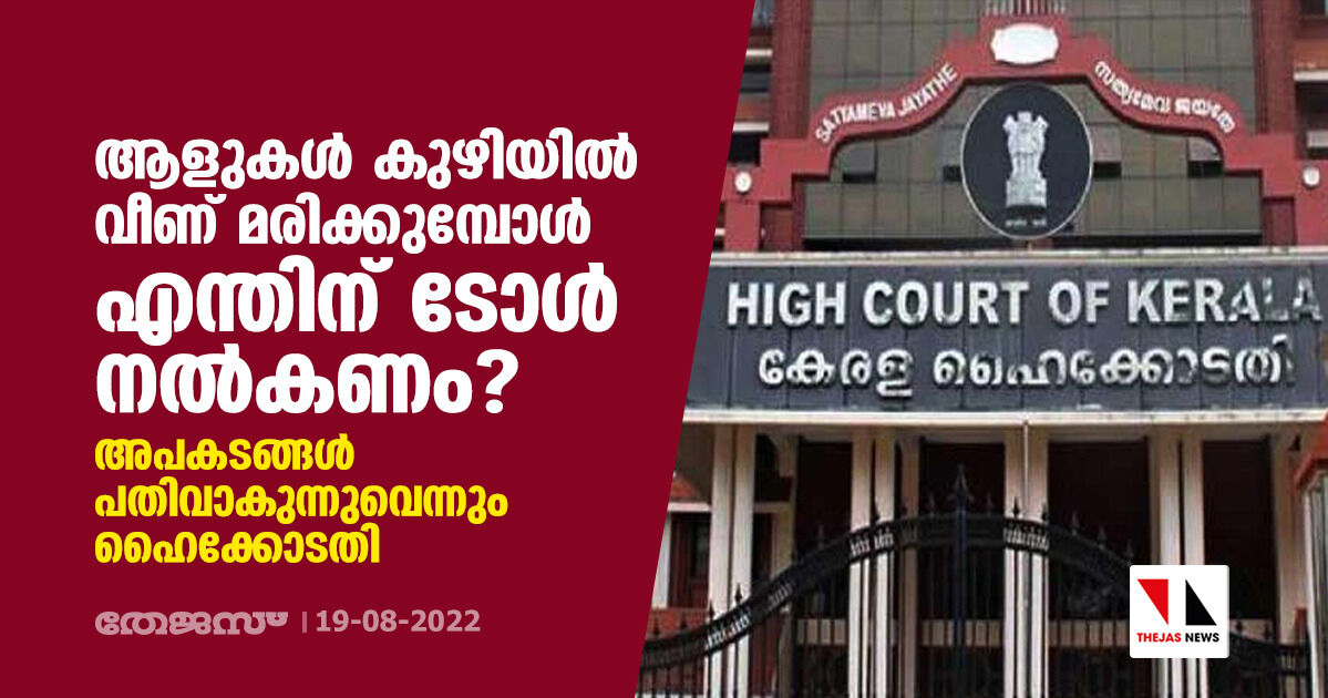 ആളുകള് കുഴിയില് വീണ് മരിക്കുമ്പോള് എന്തിന് ടോള് നല്കണം?; അപകടങ്ങള് പതിവാകുന്നുവെന്നും ഹൈക്കോടതി