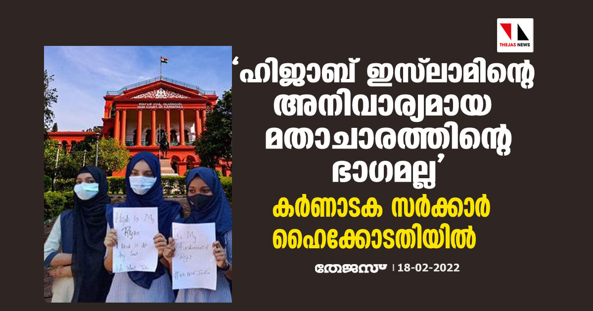 'ഹിജാബ് ഇസ്ലാമിന്റെ അനിവാര്യമായ മതാചാരത്തിന്റെ ഭാഗമല്ല'; കര്ണാടക സര്ക്കാര് ഹൈക്കോടതിയില്
