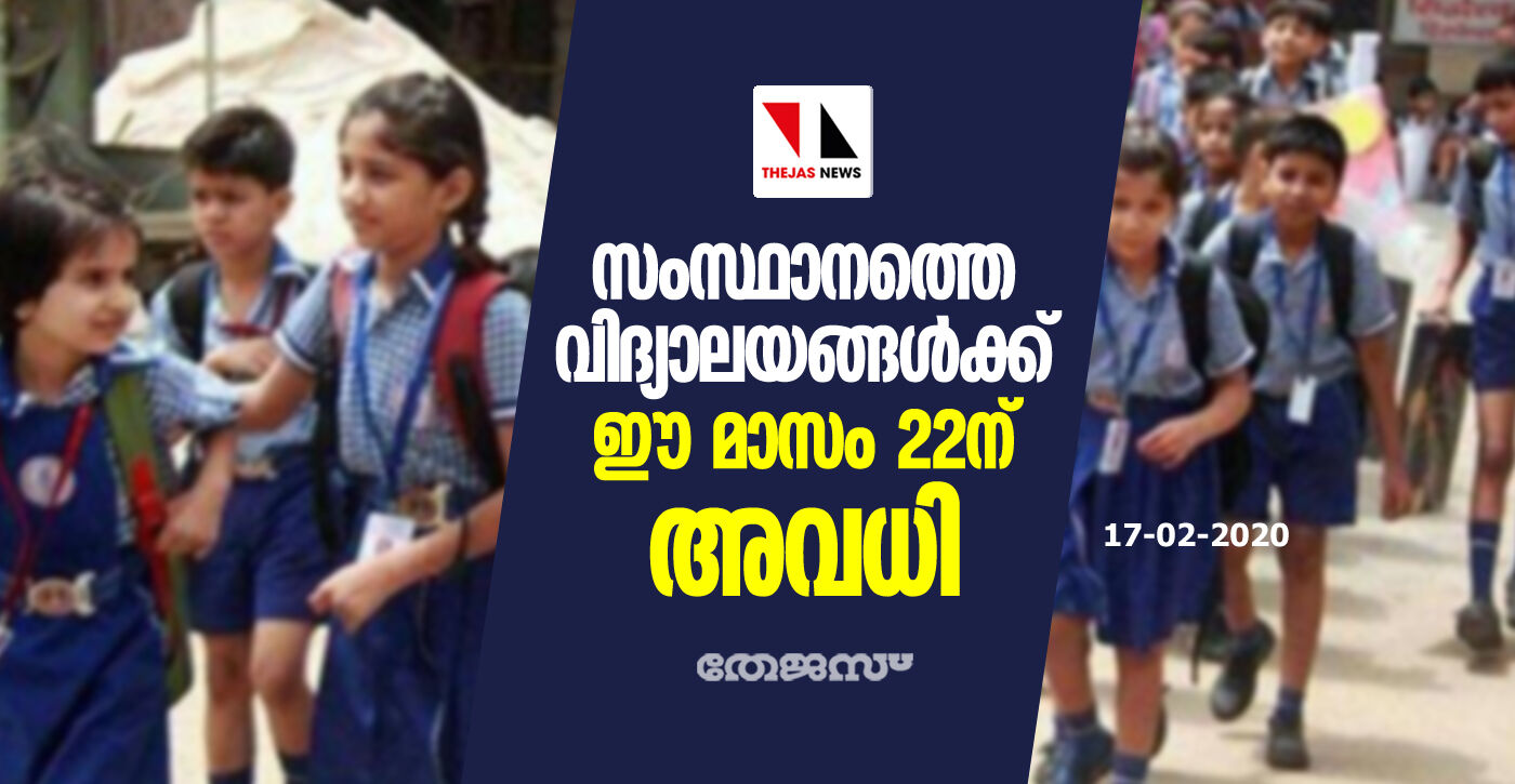 സംസ്ഥാനത്തെ വിദ്യാലയങ്ങള്ക്ക് ഈ മാസം 22ന് അവധി