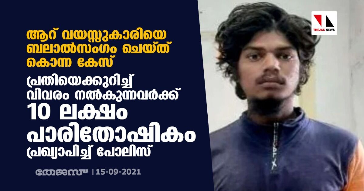 ആറ് വയസ്സുകാരിയെ ബലാല്സംഗം ചെയ്ത് കൊന്ന കേസ്; പ്രതിയെക്കുറിച്ച് വിവരം നല്കുന്നവര്ക്ക് 10 ലക്ഷം പാരിതോഷികം പ്രഖ്യാപിച്ച് പോലിസ്