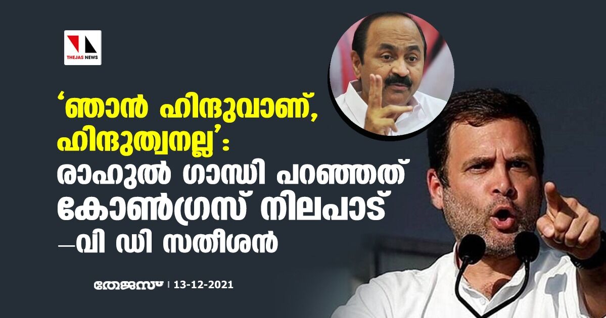 'ഞാന് ഹിന്ദുവാണ്,ഹിന്ദുത്വനല്ല': രാഹുല് ഗാന്ധി പറഞ്ഞത് കോണ്ഗ്രസ് നിലപാട്-വി ഡി സതീശന്