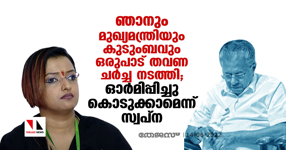 ഞാനും മുഖ്യമന്ത്രിയും കുടുംബവും ഒരുപാട് തവണ ചര്ച്ച നടത്തി; ഓര്മിപ്പിച്ചു കൊടുക്കാമെന്ന് സ്വപ്ന