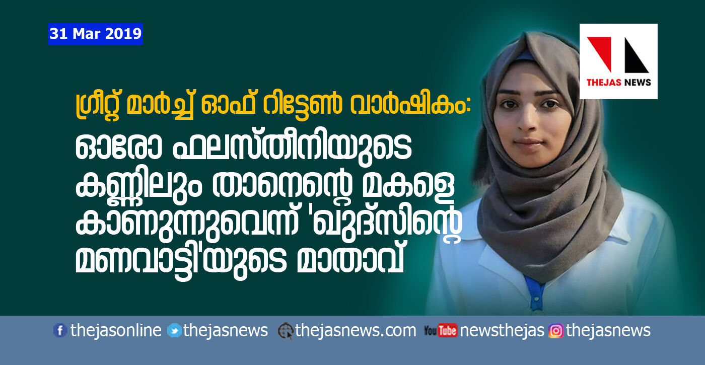 ഗ്രീറ്റ് മാര്ച്ച് ഓഫ് റിട്ടേണ് വാര്ഷികം: ഓരോ ഫലസ്തീനിയുടെ കണ്ണിലും താനെന്റെ മകളെ കാണുന്നുവെന്ന് 'ഖുദ്സിന്റെ മണവാട്ടി'യുടെ മാതാവ്