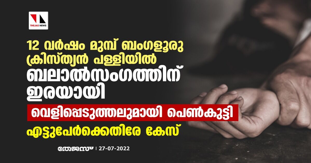 12 വര്ഷം മുമ്പ് ബംഗളൂരു ക്രിസ്ത്യന് പള്ളിയില് ബലാല്സംഗത്തിനിരയായി; വെളിപ്പെടുത്തലുമായി പെണ്കുട്ടി, എട്ടുപേര്ക്കെതിരേ കേസ്