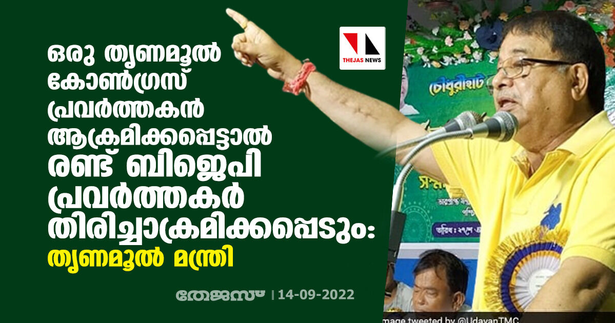ഒരു തൃണമൂല് കോണ്ഗ്രസ് പ്രവര്ത്തകൻ ആക്രമിക്കപ്പെട്ടാല് രണ്ട് ബിജെപി പ്രവര്ത്തകര് തിരിച്ചാക്രമിക്കപ്പെടും: തൃണമൂൽ മന്ത്രി