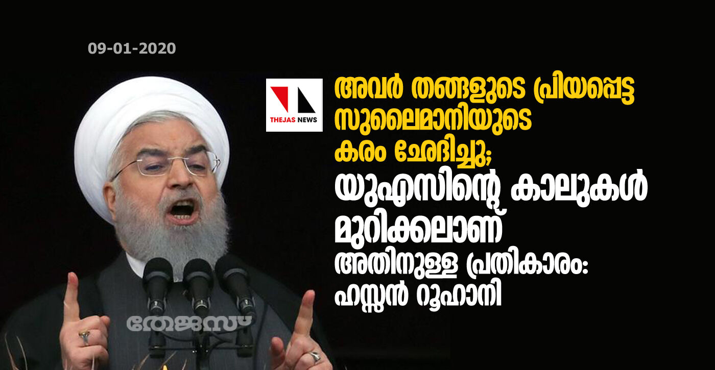 അവര് തങ്ങളുടെ പ്രിയപ്പെട്ട സുലൈമാനിയുടെ കരം ഛേദിച്ചു; യുഎസിന്റെ കാലുകള് മുറിക്കലാണ് അതിനുള്ള പ്രതികാരം: ഹസ്സന് റൂഹാനി