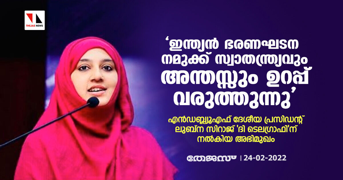 'ഇന്ത്യന് ഭരണഘടന നമുക്ക് സ്വാതന്ത്ര്യവും അന്തസ്സും ഉറപ്പ് വരുത്തുന്നു'; എന്ഡബ്ല്യൂഎഫ് ദേശീയ പ്രസിഡന്റ് ലുബ്ന സിറാജ് 'ദി ടെലഗ്രാഫി'ന് നല്കിയ അഭിമുഖം