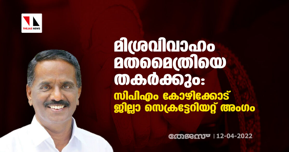 മിശ്രവിവാഹം മതമൈത്രിയെ തകർക്കും: സിപിഎം കോഴിക്കോട് ജില്ലാ സെക്രട്ടേറിയറ്റ് അംഗം