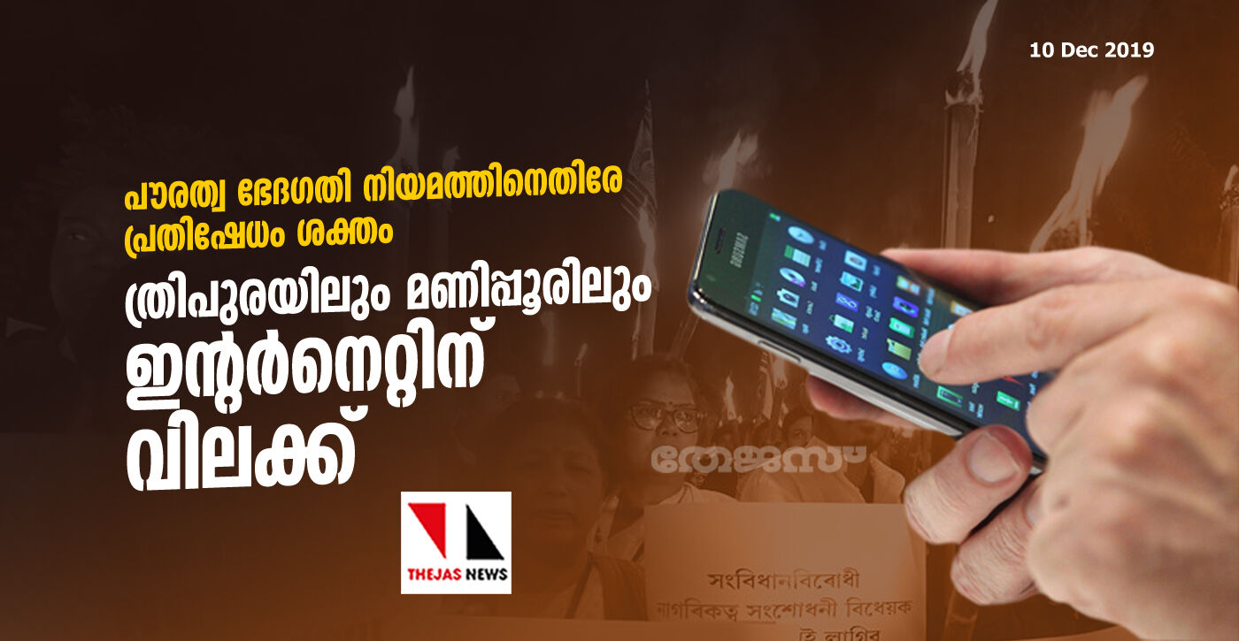 പൗരത്വ ഭേദഗതി നിയമത്തിനെതിരേ പ്രതിഷേധം ശക്തം; ത്രിപുരയിലും മണിപ്പൂരിലും ഇന്റര്നെറ്റിന് വിലക്ക്