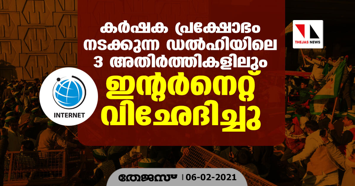 കർഷക പ്രക്ഷോഭം നടക്കുന്ന ഡൽഹിയിലെ 3 അതിർത്തികളിലും ഇന്റർനെറ്റ് വിഛേദിച്ചു