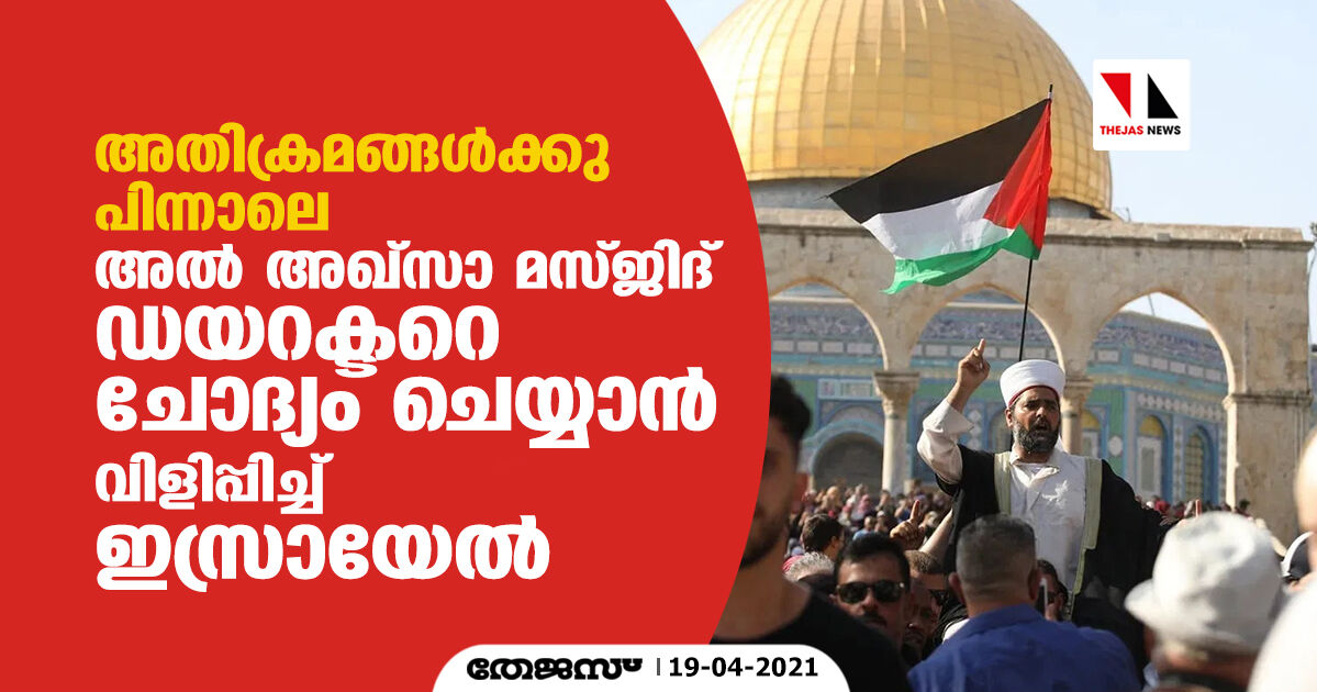 അതിക്രമങ്ങള്ക്കു പിന്നാലെ അല് അഖ്സാ മസ്ജിദ് ഡയറക്ടറെ ചോദ്യം ചെയ്യാന് വിളിപ്പിച്ച് ഇസ്രായേല്