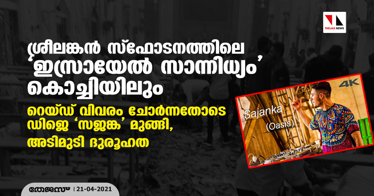 ശ്രീലങ്കന് സ്ഫോടനത്തിലെ 'ഇസ്രായേല് സാന്നിധ്യം' കൊച്ചിയിലും; റെയ്ഡ് വിവരം ചോര്ന്നതോടെ ഡിജെ 'സജങ്ക' മുങ്ങി, അടിമുടി ദുരൂഹത
