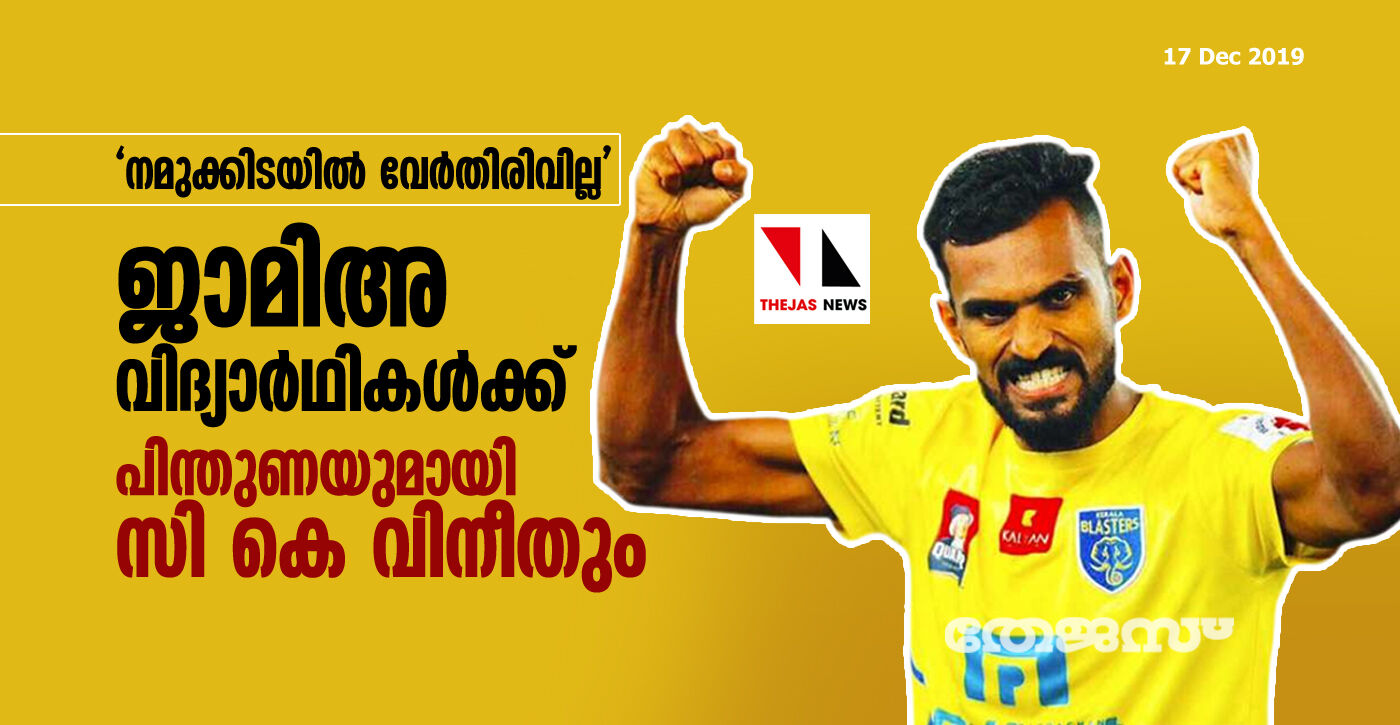 'നമുക്കിടയില് വേര്തിരിവില്ല'; ജാമിഅ വിദ്യാര്ഥികള്ക്ക് പിന്തുണയുമായി സി കെ വിനീതും