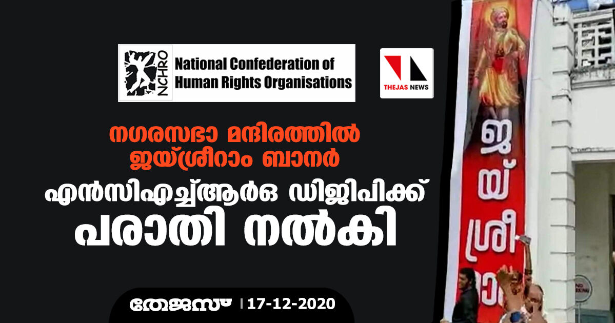 നഗരസഭാ മന്ദിരത്തില് ജയ് ശ്രീറാം ബാനര്: എന്സിഎച്ച്ആര്ഒ ഡിജിപിക്ക് പരാതി നല്കി