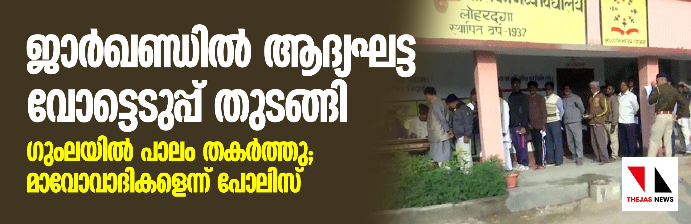 ജാര്ഖണ്ഡില് ആദ്യഘട്ട വോട്ടെടുപ്പ് തുടങ്ങി; ഗുംലയില് പാലം തകര്ത്തു, മാവോവാദികളെന്ന് പോലിസ്