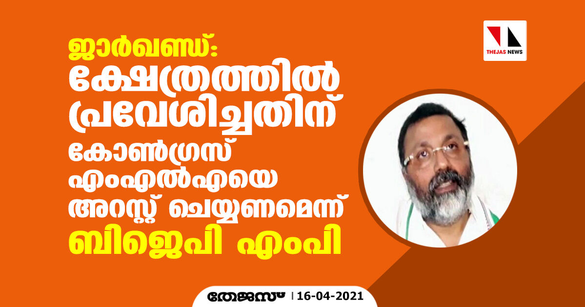 ജാർഖണ്ഡ്: ക്ഷേത്രത്തിൽ പ്രവേശിച്ചതിന് കോൺഗ്രസ് എംഎൽഎയെ അറസ്റ്റ് ചെയ്യണമെന്ന് ബിജെപി എംപി