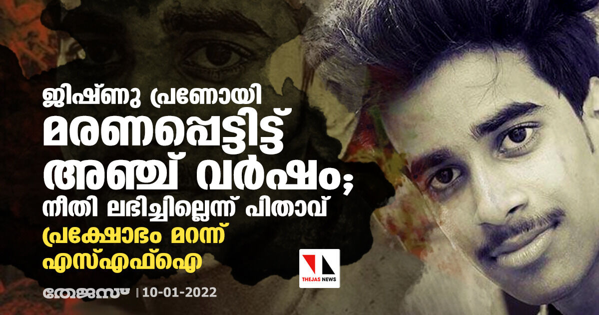 ജിഷ്ണു പ്രണോയി മരണപ്പെട്ടിട്ട് അഞ്ച് വർഷം; നീതി ലഭിച്ചില്ലെന്ന് പിതാവ്; പ്രക്ഷോഭം മറന്ന് എസ്എഫ്ഐ