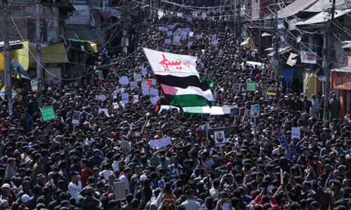 മസ്ജിദുല് അഖ്സയെ മോചിപ്പിക്കണം തുടങ്ങിയ മുദ്രാവാക്യങ്ങള് ഉയര്ന്നു. കാര്ഗിലില് നടന്ന റാലിക്ക് മര്ഖസി ഇമാം ഹുജ്ജത്തുല് ഇസ്ലാം നേതൃത്വം നല്കി.അതേസമയം, മധ്യ കശ്മീരിലെ സോന്പാ ഗ്രാമത്തില് റാലി നടത്തിയവര്ക്കെതിരെ പോലിസ് കേസെടുത്തു. വലിയ ആള്ക്കൂട്ടമാണ് പരിപാടിക്ക് എത്തിയതെന്നും അവര് പ്രകോപനപരമായ മുദ്രാവാക്യങ്ങള് വിളിച്ചെന്നും പോലിസ് വക്താവ് ആരോപിച്ചു. പൊതുസമാധാനം ഇല്ലാതാക്കുന്ന പരിപാടികളില് നിന്ന് വിട്ടുനില്ക്കണമെന്നും പോലിസ് ആവശ്യപ്പെട്ടു.