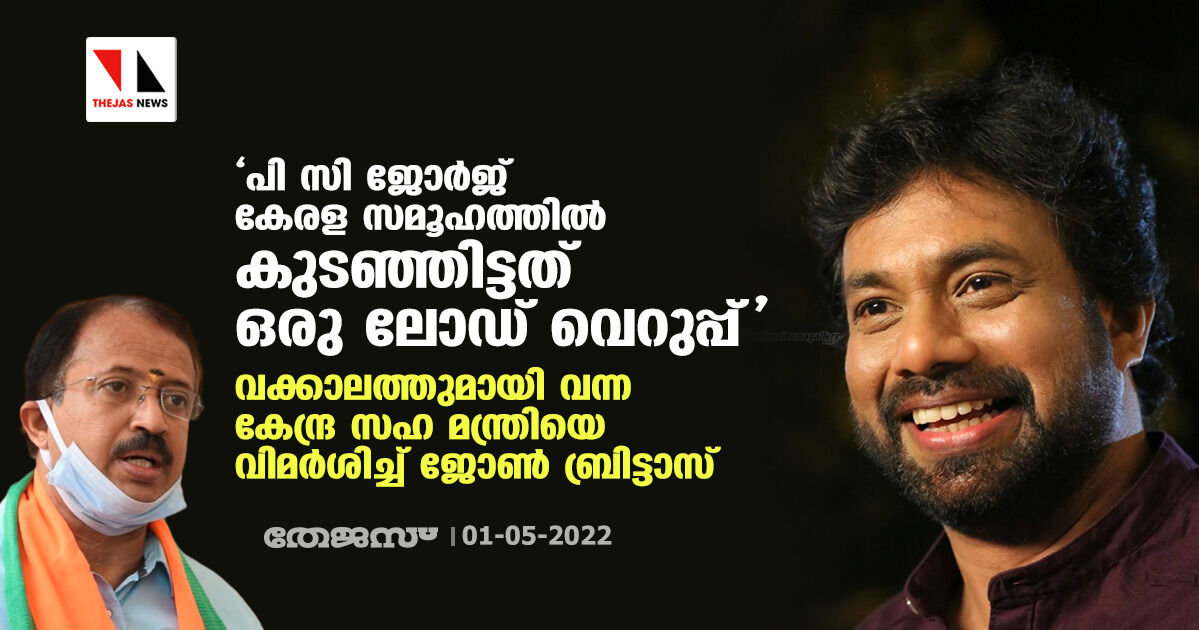 'പി സി ജോര്ജ് കേരള സമൂഹത്തില് കുടഞ്ഞിട്ടത് ഒരു ലോഡ് വെറുപ്പ്'; വക്കാലത്തുമായി വന്ന കേന്ദ്ര സഹ മന്ത്രിയെ വിമര്ശിച്ച് ജോണ് ബ്രിട്ടാസ്