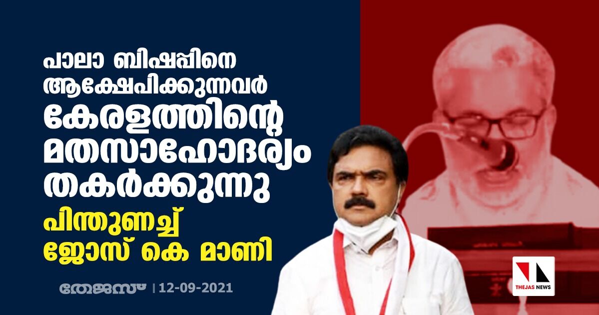 പാലാ ബിഷപ്പിനെ ആക്ഷേപിക്കുന്നവര് കേരളത്തിന്റെ മതസാഹോദര്യം തകർക്കുന്നു; പിന്തുണച്ച് ജോസ് കെ മാണി