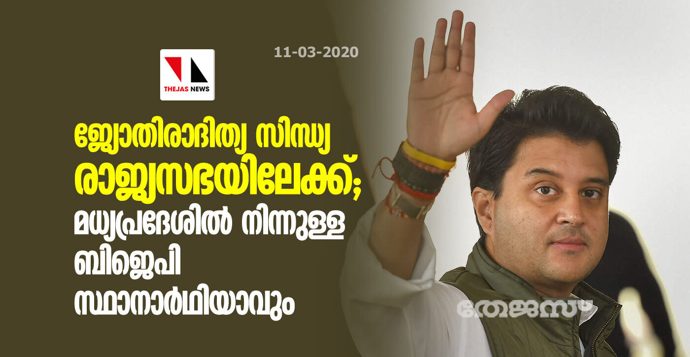 ജ്യോതിരാദിത്യ സിന്ധ്യ രാജ്യസഭയിലേക്ക്; മധ്യപ്രദേശില് നിന്നുള്ള ബിജെപി സ്ഥാനാര്ഥിയാവും