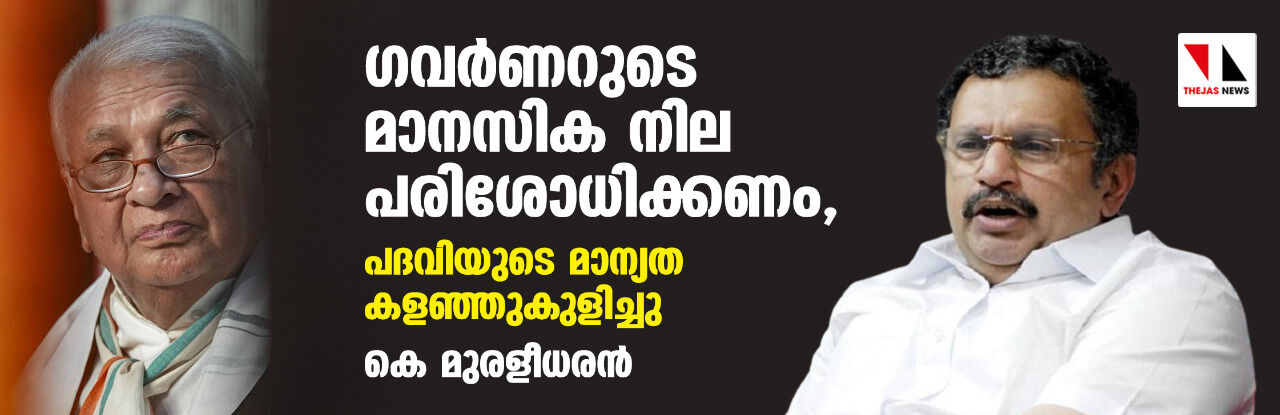 ഗവർണറുടെ മാനസിക നില പരിശോധിക്കണം, പദവിയുടെ മാന്യത കളഞ്ഞുകുളിച്ചു: കെ മുരളീധരൻ