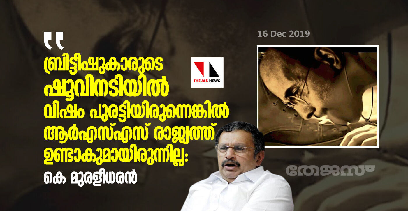 ബ്രിട്ടീഷുകാരുടെ ഷൂവിനടിയില് വിഷം പുരട്ടിയിരുന്നെങ്കില് ആര്എസ്എസ് രാജ്യത്ത് ഉണ്ടാകുമായിരുന്നില്ല: കെ മുരളീധരന്
