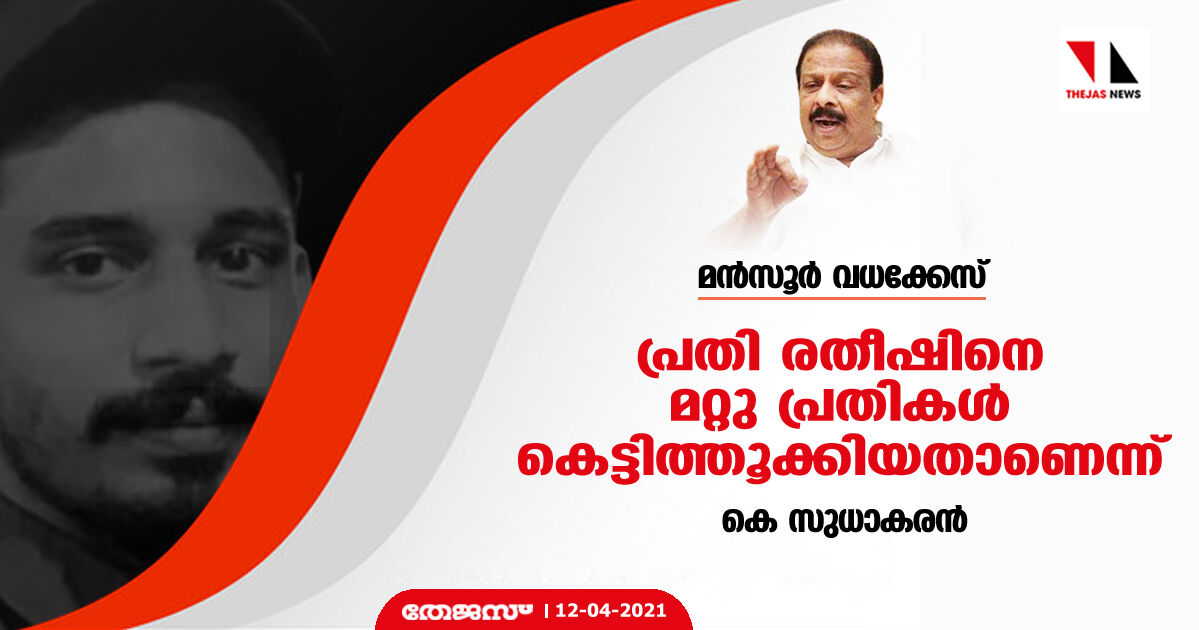 മന്സൂര് വധക്കേസ് പ്രതി രതീഷിനെ മറ്റു പ്രതികള് കെട്ടിത്തൂക്കിയതാണെന്ന് കെ സുധാകരന്
