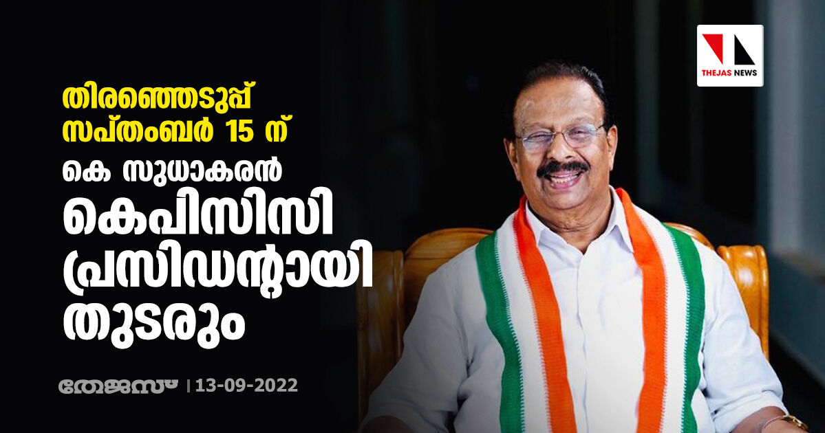 തിരഞ്ഞെടുപ്പ് സപ്തംബർ 15 ന്; കെ സുധാകരൻ കെപിസിസി പ്രസിഡന്റായി തുടരും