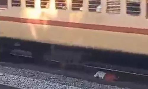 റെയില്പാളത്തില് കിടന്നയാള് തലനാരിഴക്ക് രക്ഷപ്പെട്ടു(വീഡിയോ)