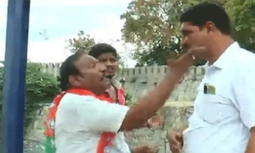 പോലിസുകാരന്റെ മുഖത്തടിച്ച് ബിജെപി നേതാവ്