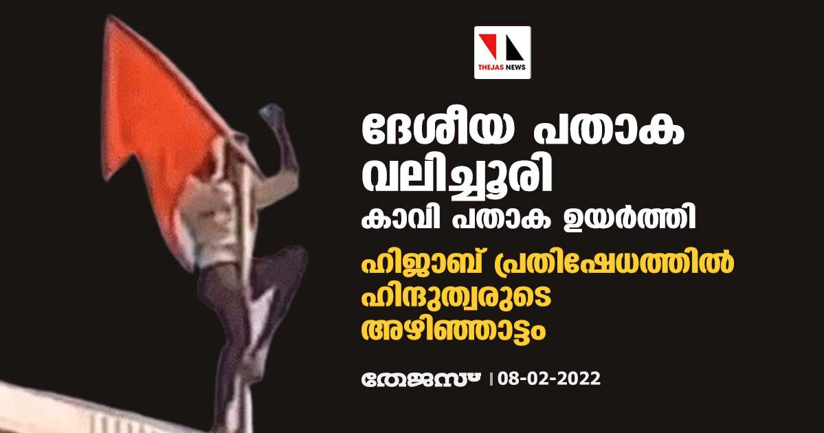 ദേശീയ പതാക വലിച്ചൂരി കാവി പതാക ഉയര്ത്തി; ഹിജാബ് പ്രതിഷേധത്തിൽ ഹിന്ദുത്വരുടെ അഴിഞ്ഞാട്ടം
