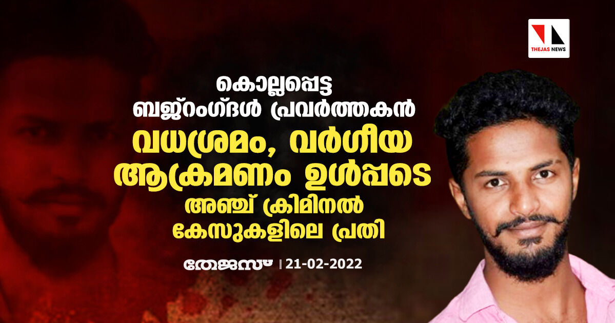 കൊല്ലപ്പെട്ട ബജ്റംഗ്ദള് പ്രവര്ത്തകന് വധശ്രമം, വര്ഗീയ ആക്രമണം ഉള്പ്പടെ അഞ്ച് ക്രിമിനല് കേസുകളിലെ പ്രതി
