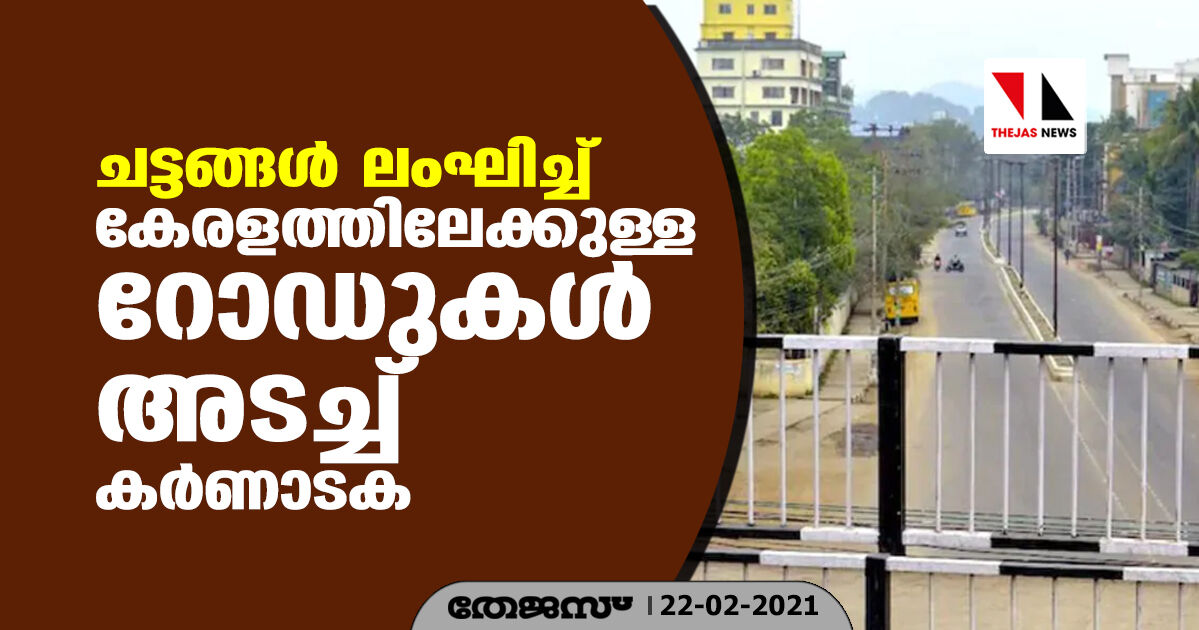 ചട്ടങ്ങള് ലംഘിച്ച് കേരളത്തിലേക്കുള്ള റോഡുകള് അടച്ച് കര്ണാടക
