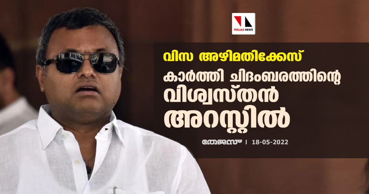 വിസ അഴിമതിക്കേസ്; കാര്ത്തി ചിദംബരത്തിന്റെ വിശ്വസ്തന് അറസ്റ്റില്