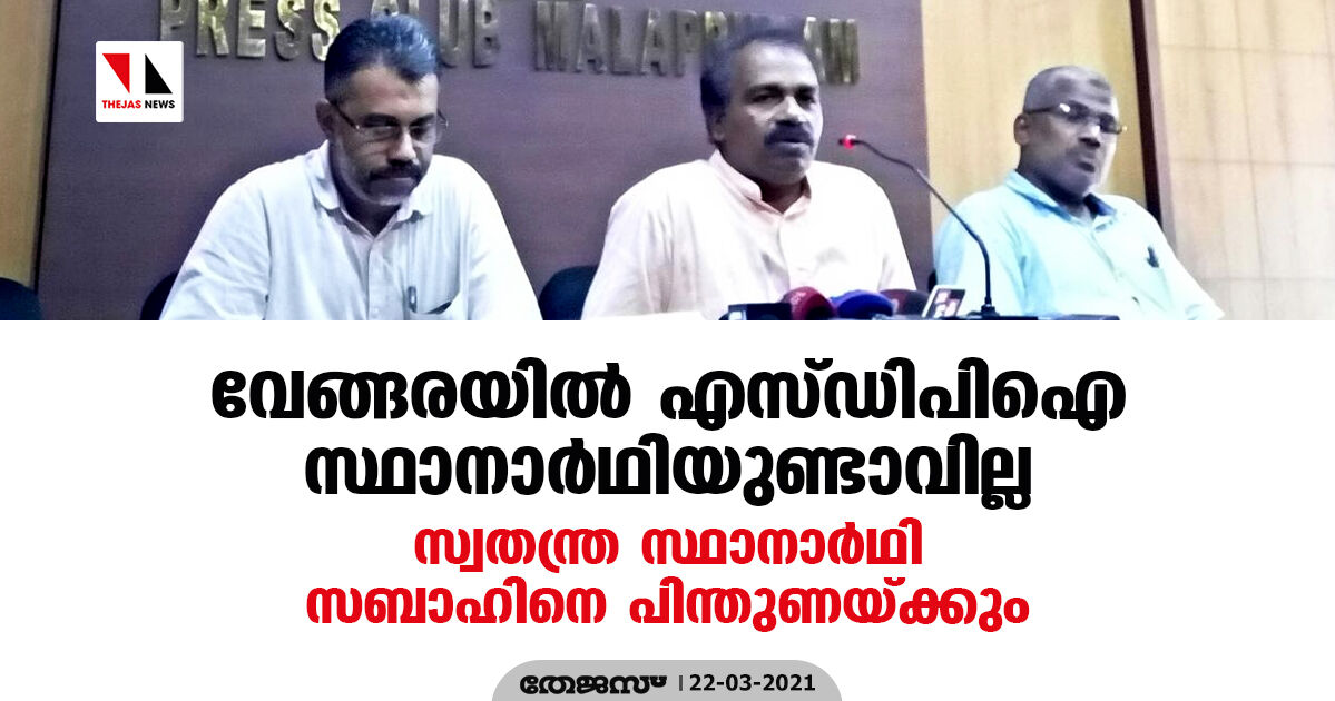 വേങ്ങരയില് എസ് ഡിപിഐ സ്ഥാനാര്ഥിയുണ്ടാവില്ല; സ്വതന്ത്രസ്ഥാനാര്ഥി സബാഹിനെ പിന്തുണയ്ക്കും