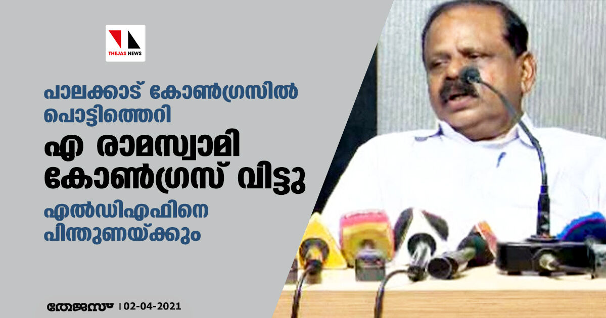 പാലക്കാട് കോണ്ഗ്രസില് പൊട്ടിത്തെറി; എ രാമസ്വാമി കോണ്ഗ്രസ് വിട്ടു, എല്ഡിഎഫിനെ പിന്തുണയ്ക്കും