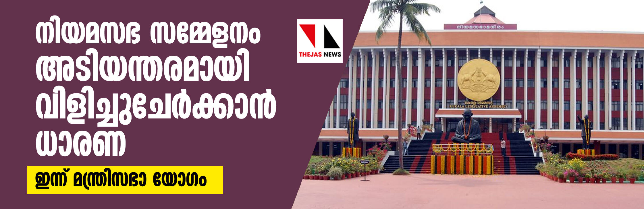 നിയമസഭ സമ്മേളനം അടിയന്തരമായി വിളിച്ചുചേര്ക്കാന് ധാരണ; ഇന്ന് മന്ത്രിസഭാ യോഗം