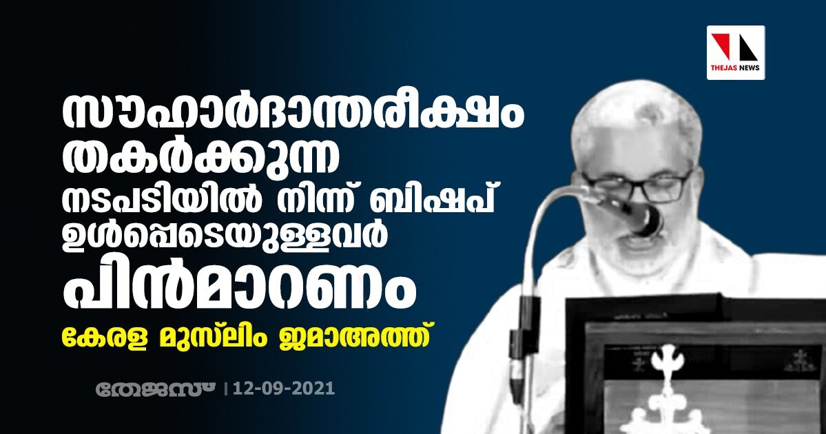 സൗഹാർദാന്തരീക്ഷം തകർക്കുന്ന നടപടിയിൽ നിന്ന് ബിഷപ് ഉൾപ്പെടെയുള്ളവർ പിൻമാറണം: കേരള മുസ്ലിം ജമാഅത്ത്