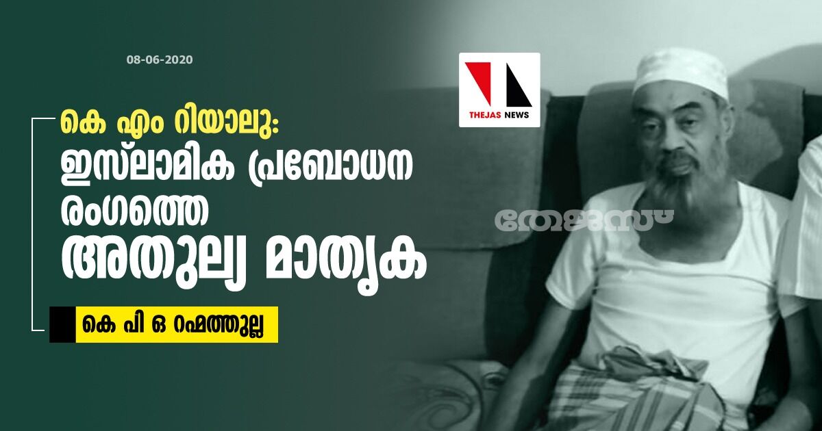 കെ എം റിയാലു: ഇസ്ലാമിക പ്രബോധന രംഗത്തെ അതുല്യ മാതൃക