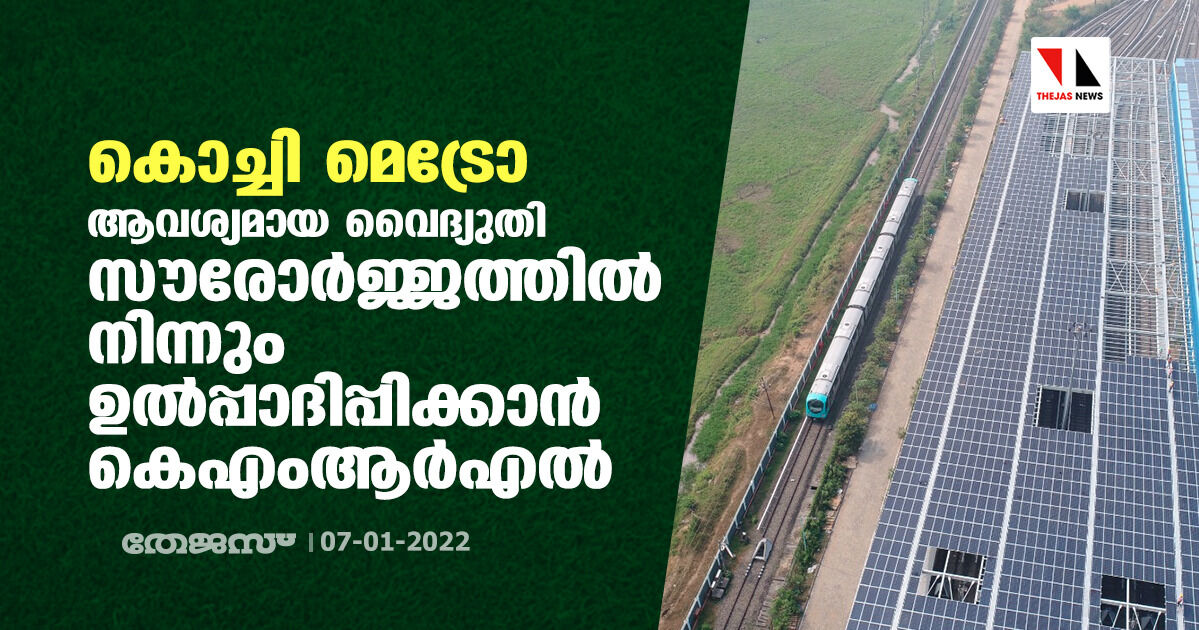 കൊച്ചി മെട്രോ: ആവശ്യമായ വൈദ്യുതി സൗരോര്ജ്ജത്തില് നിന്നും ഉല്പ്പാദിപ്പിക്കാന് കെഎംആര്എല്