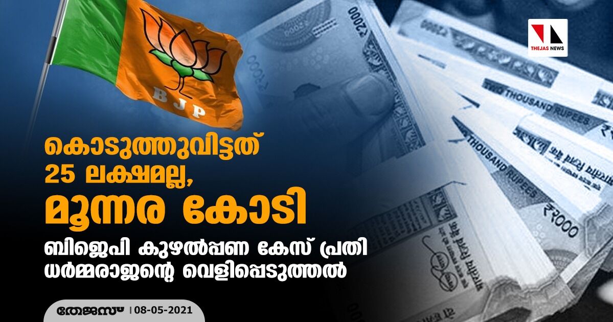 കൊടുത്തുവിട്ടത് 25 ലക്ഷമല്ല, മൂന്നര കോടി; ബിജെപി കുഴല്പ്പണ കേസ് പ്രതി ധര്മ്മരാജന്റെ വെളിപ്പെടുത്തൽ