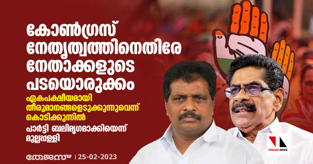 കോണ്ഗ്രസ് നേതൃത്വം ഏകപക്ഷീയമായി തീരുമാനങ്ങളെടുക്കുന്നുവെന്ന് കൊടിക്കുന്നില്; പാര്ട്ടി ബലിമൃഗമാക്കിയെന്ന് മുല്ലപ്പള്ളി